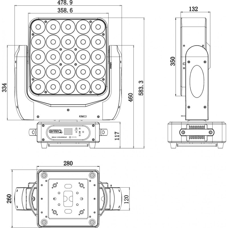 5x5 Moving panel, 25x 15W RGBW 4,5° beams + Artnet